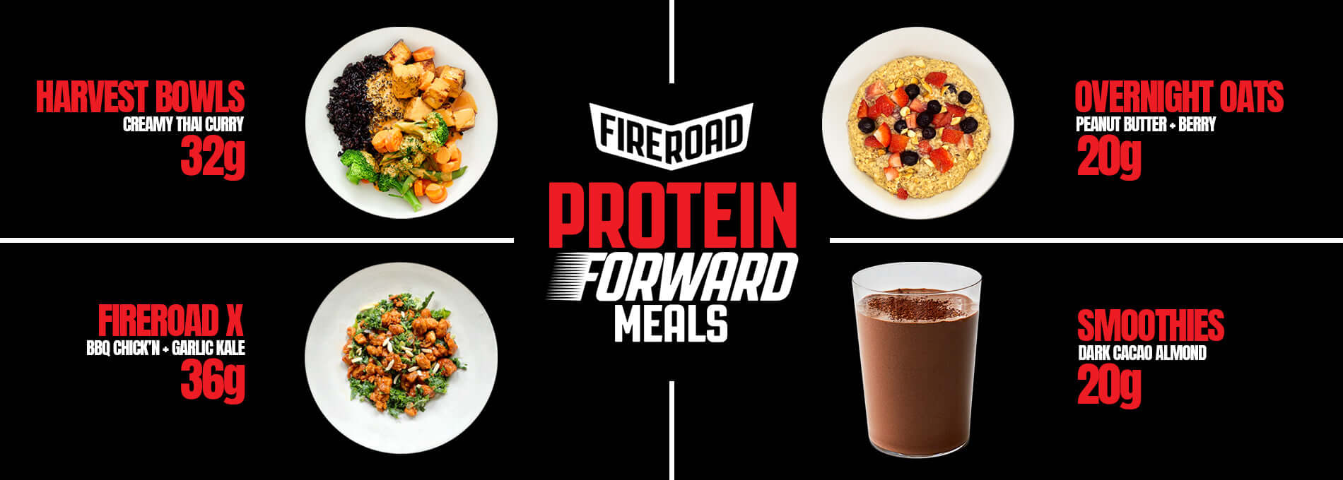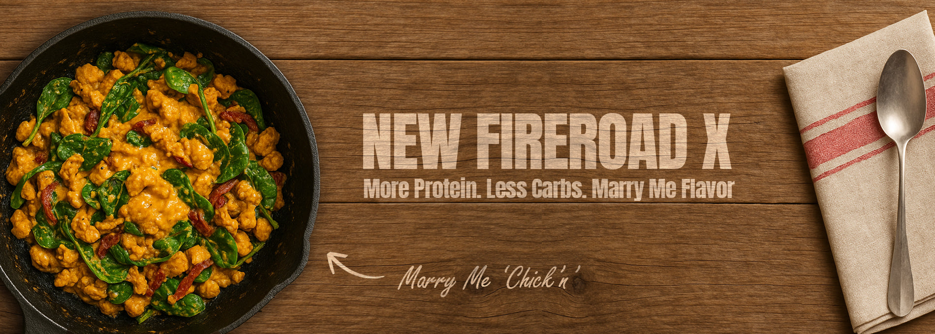 FireRoad twist on your favorite bake + serve meals. Delicious flavors, clean plant proteins and performance nutrients.