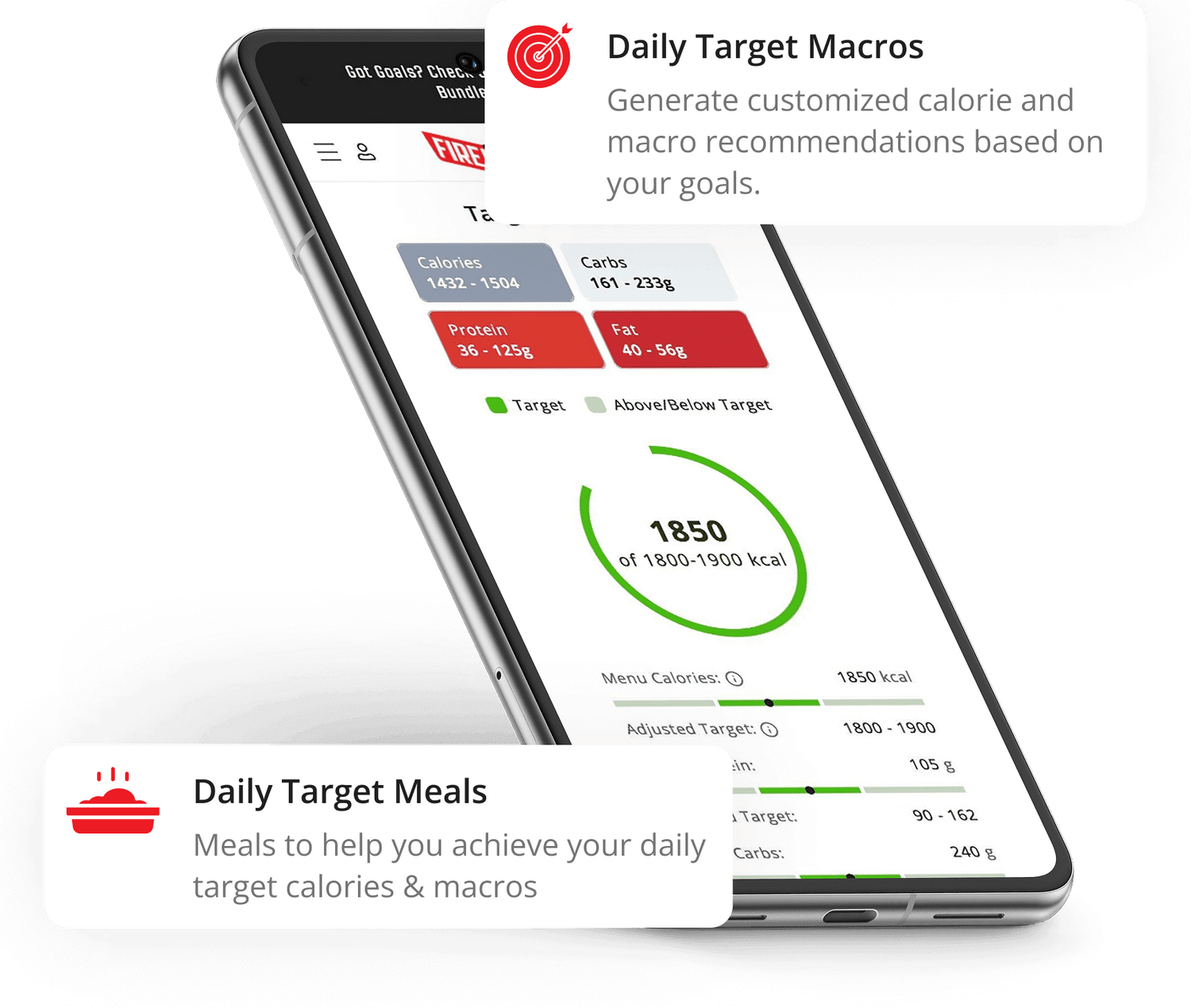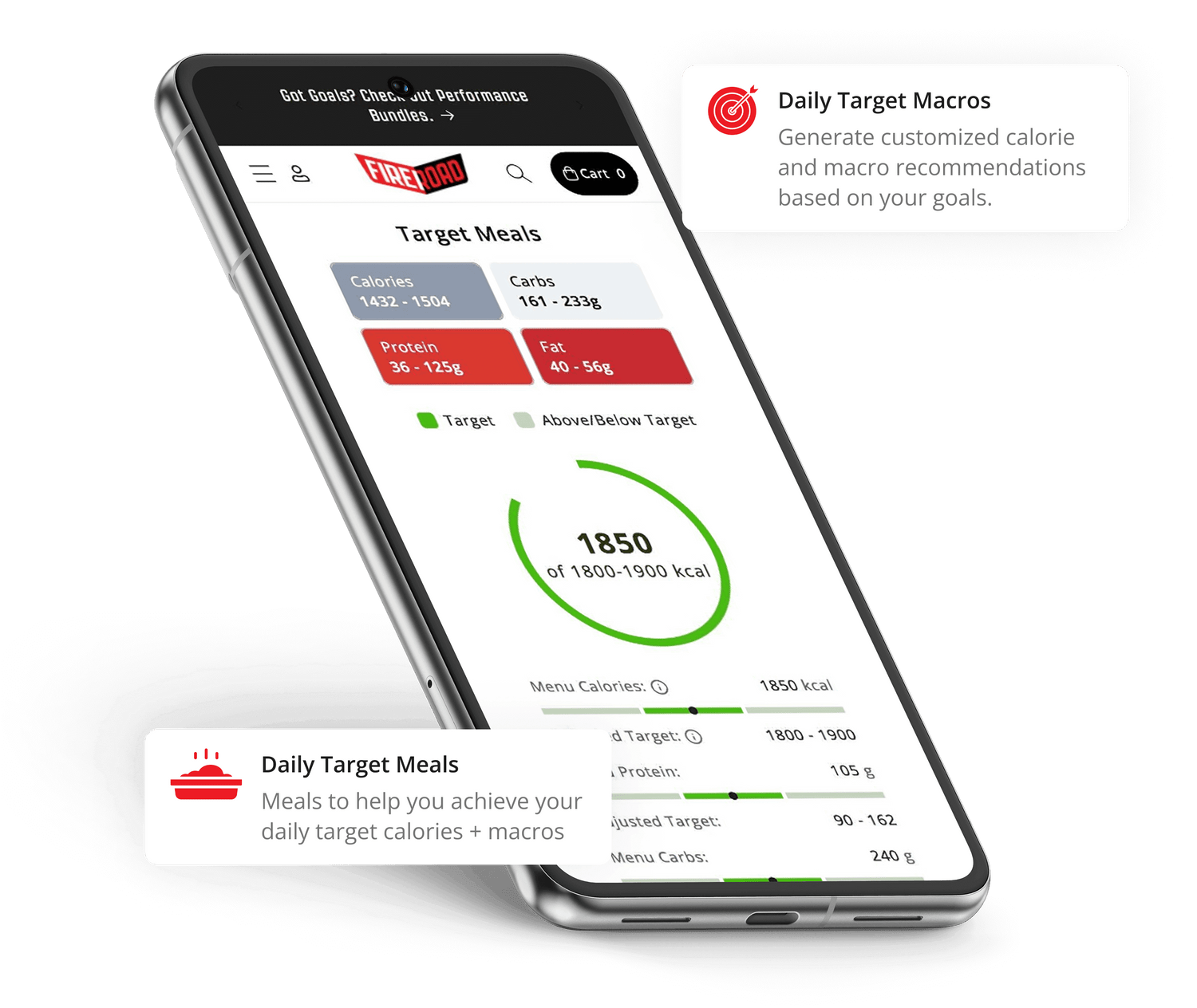MACROS.AI uses science-backed formulas to tailor calorie and macro goals to your needs. It creates daily menus from FireRoad meals, ready to add to your cart for delivery. Easy as 1-2-3!