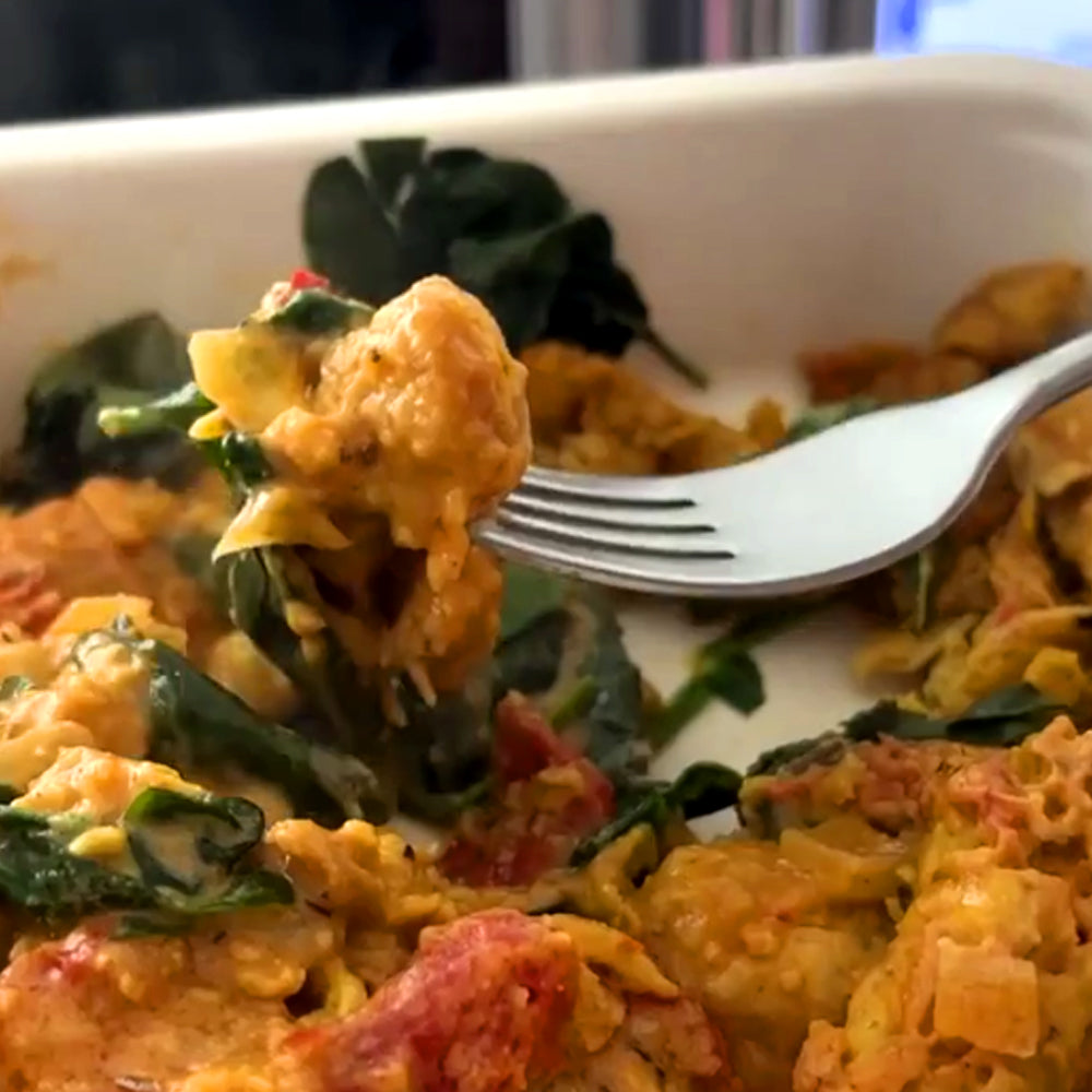 This creamy, crave-worthy classic features Abbot’s Chopped Chick’n and soy curls simmered in a rich coconut-tomato cream sauce with sun-dried tomatoes, garlic, and warming herbs. A hint of chili, wilted spinach, and a vegan bouillon finish round out this comforting, high-protein, low-carb FireRoad X bowl.