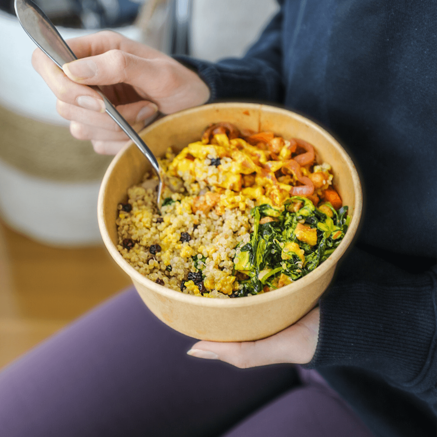 Thanks to a nutrient dense combination of greens, vegetables, quinoa, and beans, our Moroccan-spiced bowls supply you with a spectrum of B-vitamins. These vitamins, including Thiamin, Riboflavin, Niacin, Vitamin B5, and folate, play an important role in converting food to usable energy.